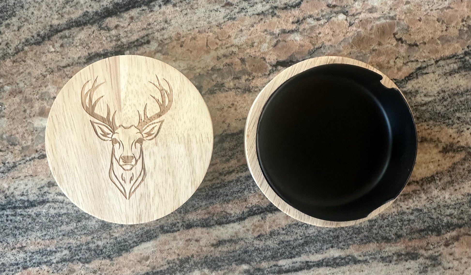 Handgefertigter Aschenbecher mit gelaserten Hirschkopf – Naturverbundenheit trifft Funktionalität