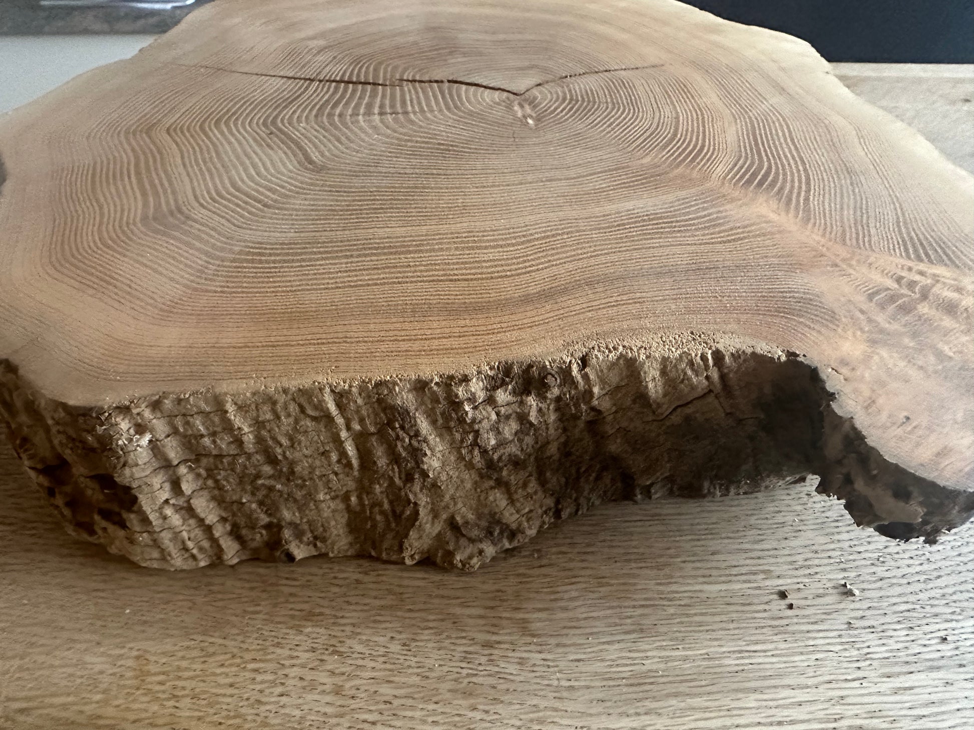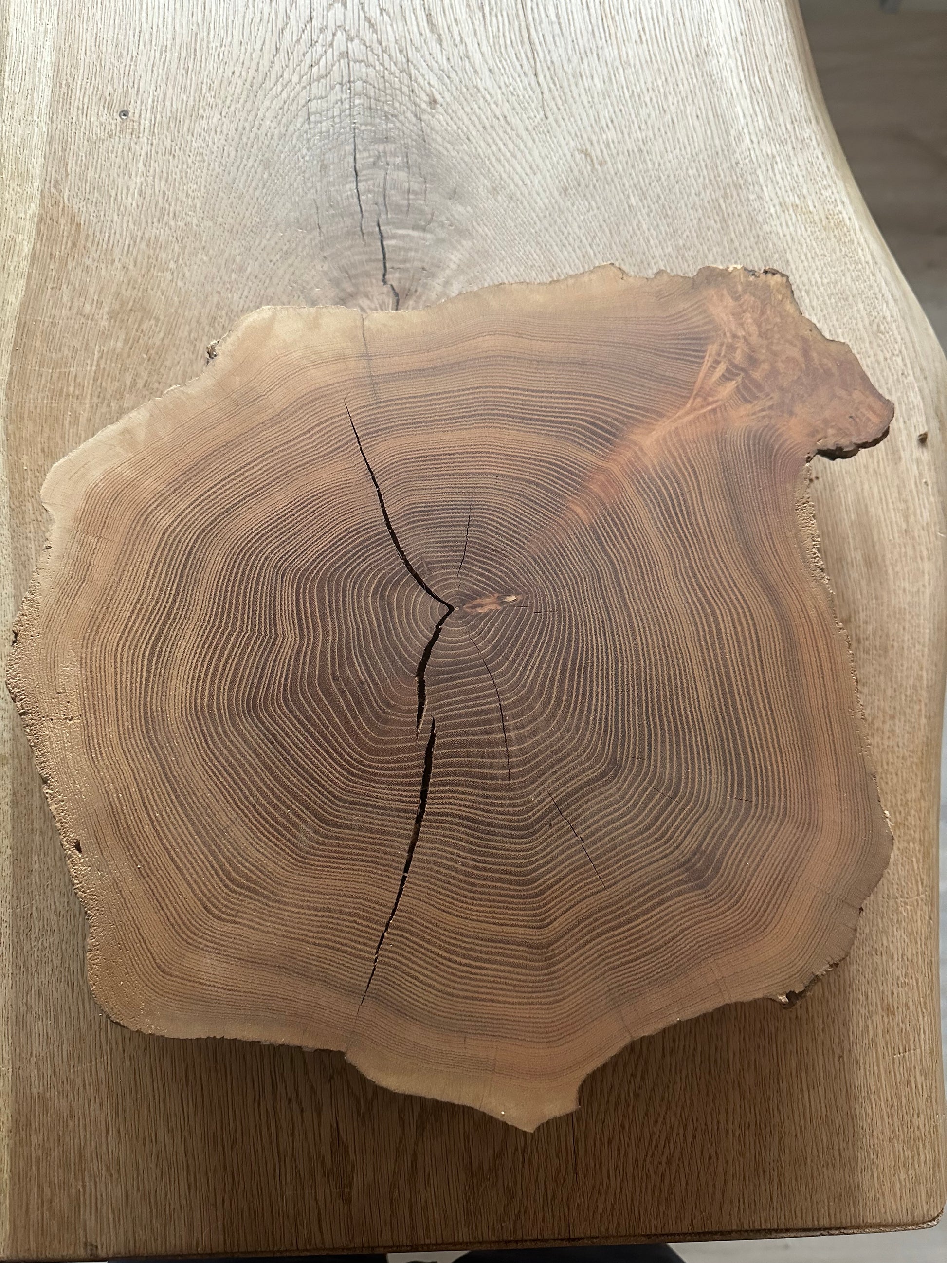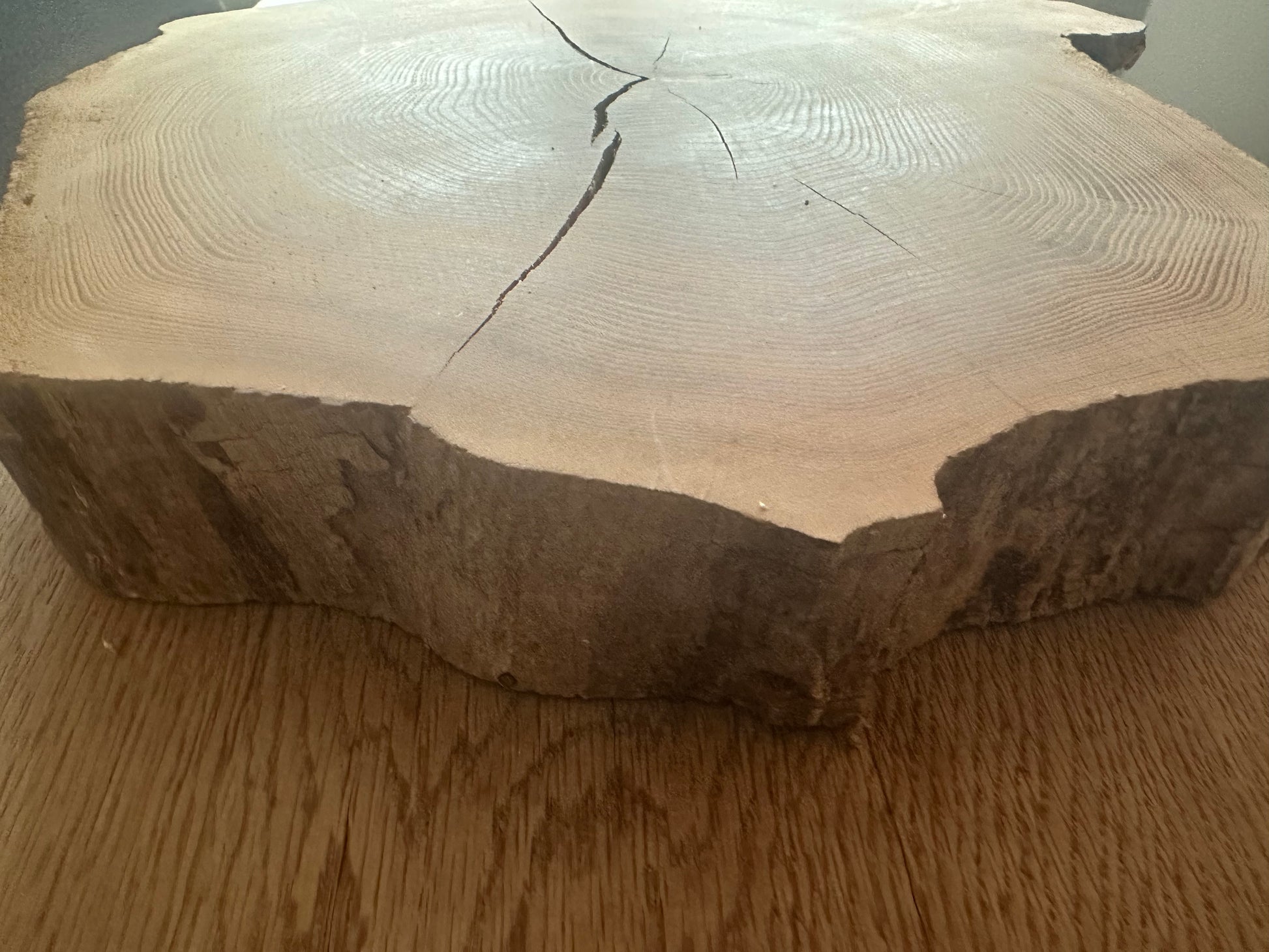 Jede Baumscheibe wird in unserer Werkstatt sorgfältig ausgewählt, geschliffen und veredelt. Die natürliche Holzstruktur mit ihren charakteristischen Jahresringen macht jedes Stück zu einem unverwechselbaren Einzelstück.
