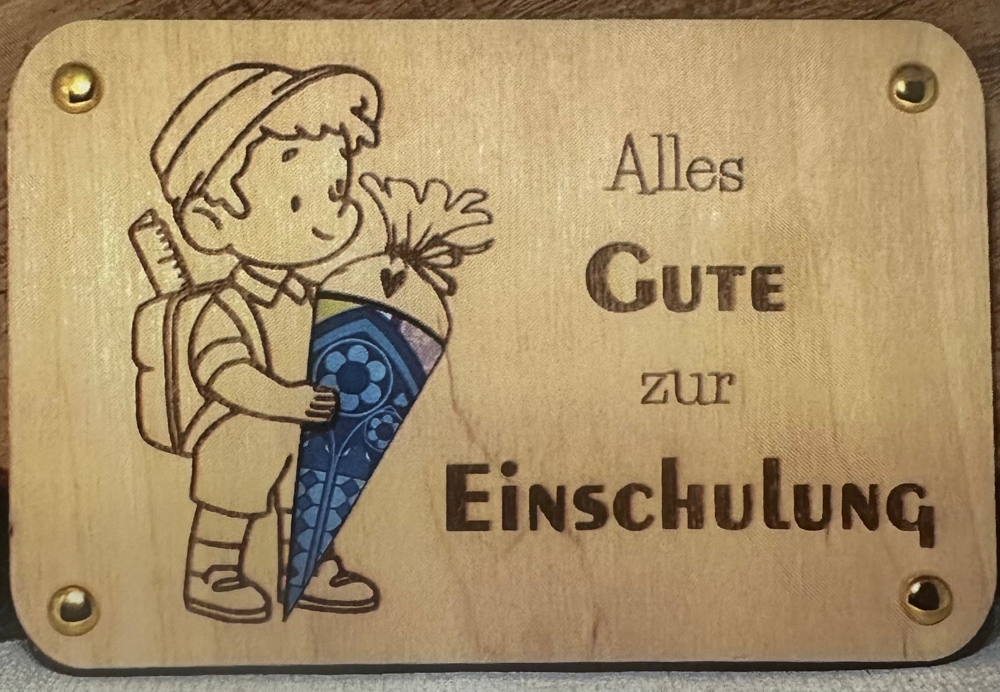 Der erste Schultag ist ein ganz besonderer Moment im Leben eines Kindes! Unsere wunderschöne Holz-Geschenkkarte ist die ideale Ergänzung zur Schultüte und macht das Einschulungsgeschenk zu etwas ganz Besonderem.