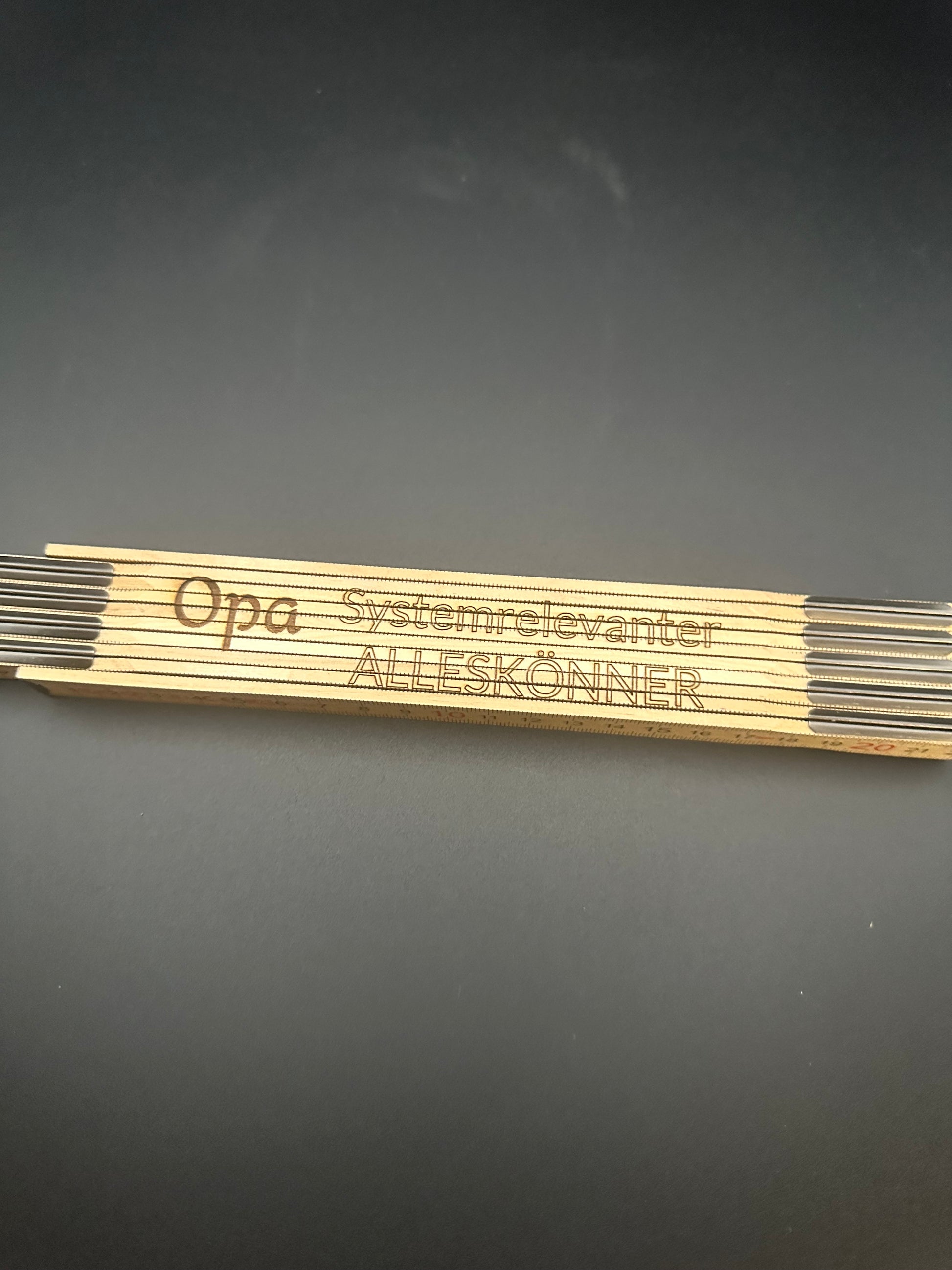 Jeder kennt ihn: Den Opa, der einfach ALLES kann! Unser hochwertiger Holz-Meterstab mit dem liebevollen Spruch "Opa Systemrelevanter ALLESKÖNNER" ist die perfekte Würdigung für alle Großväter, die mit ihrer Erfahrung, ihrem Können und ihrer Geduld immer zur Stelle sind.