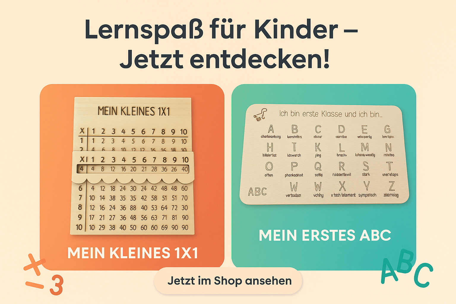 Machen Sie das Einmaleins zum Kinderspiel! Unser liebevoll gestaltetes Rechenbrett „Mein kleines 1x1" verwandelt das oft gefürchtete Mathe-Lernen in ein spannendes Abenteuer und gibt Ihrem Kind die Sicherheit, die es braucht.