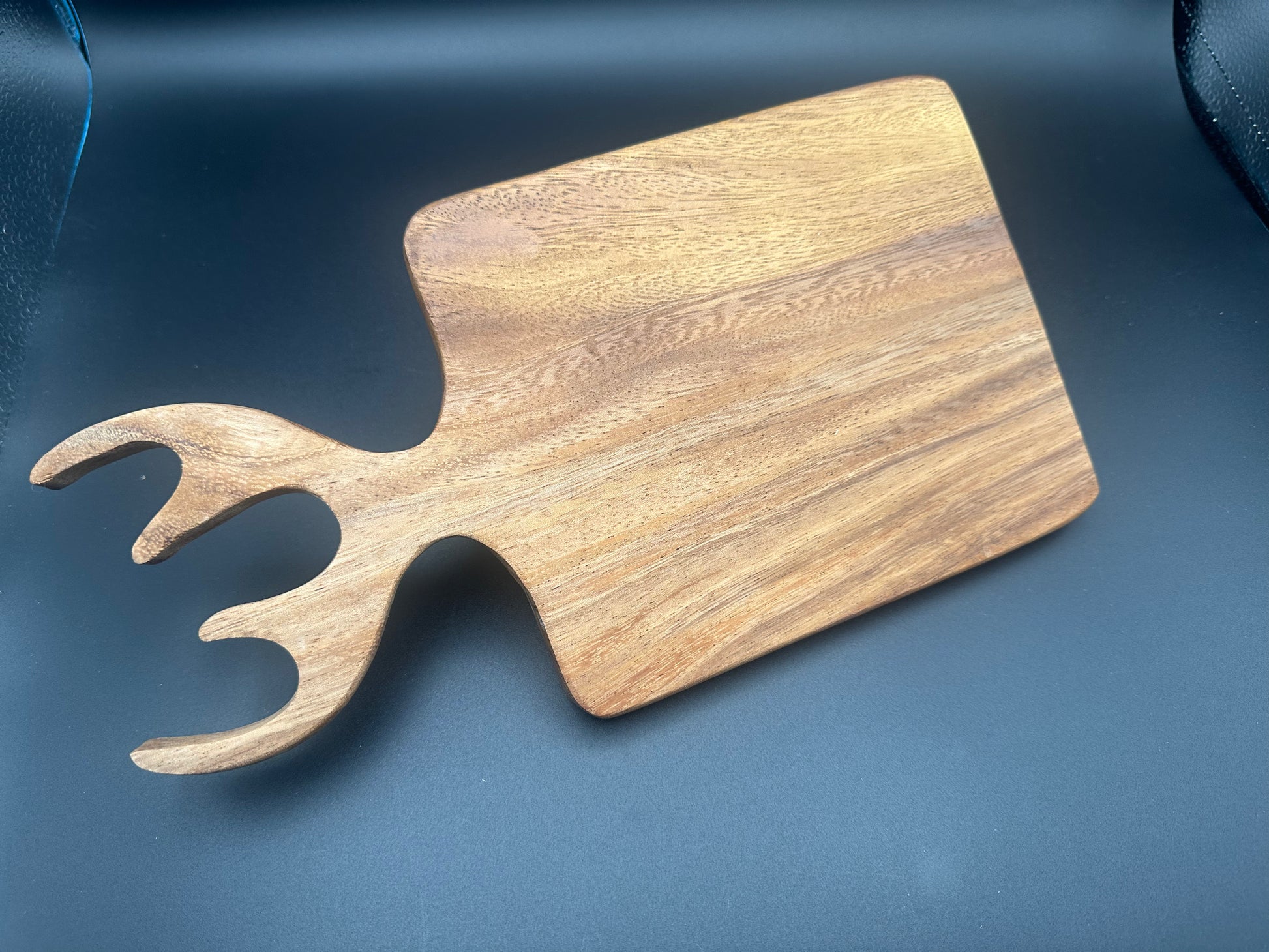 Handgefertigt aus hochwertigem Teakholz - Dieses exklusive Schneidebrett vereint Funktionalität mit rustikalem Charme. Das elegante Geweih-Motiv macht jede Küche zu einem besonderen Ort.