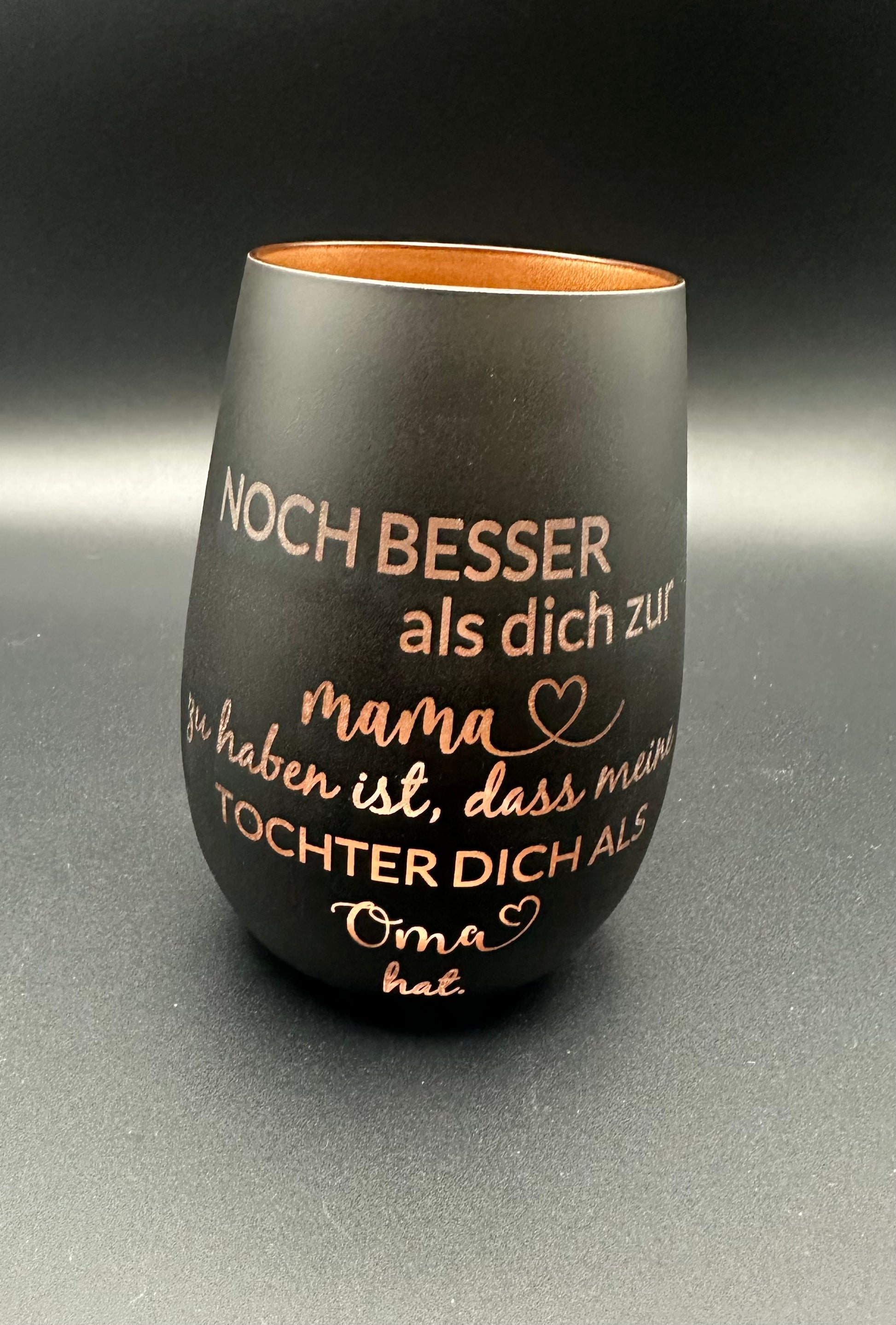 Stellen Sie sich vor, wie das warme Licht durch das edle Glas schimmert und dabei die liebevolle Botschaft „Mama / Oma" sanft beleuchtet. Ob zum Muttertag, Geburtstag, Weihnachten oder einfach als spontane Aufmerksamkeit - dieses Windlicht wird garantiert Tränen der Freude hervorrufen.