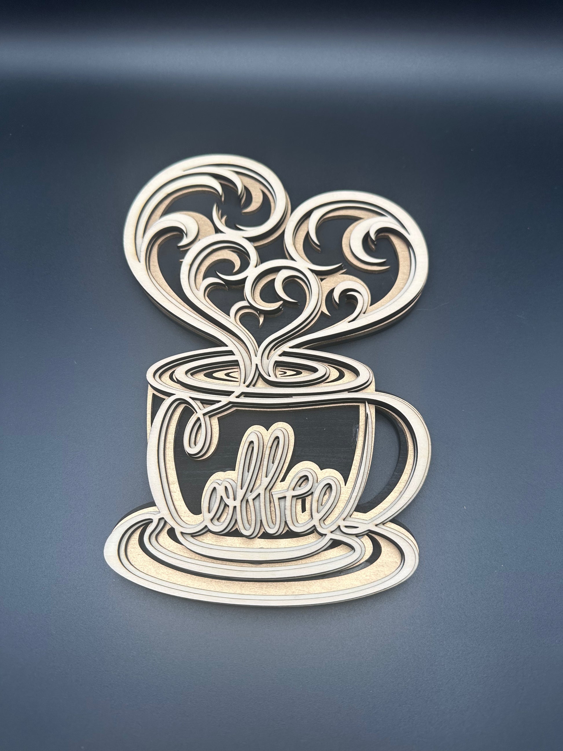 Verwandeln Sie Ihre Küche, Ihr Büro oder Ihren Lieblingsplatz in eine gemütliche Kaffee-Oase! Unser handgefertigtes 3D-Wandbild „Coffee" kombiniert moderne Lasertechnik mit zeitlosem Design und schafft einen echten Blickfang an jeder Wand.