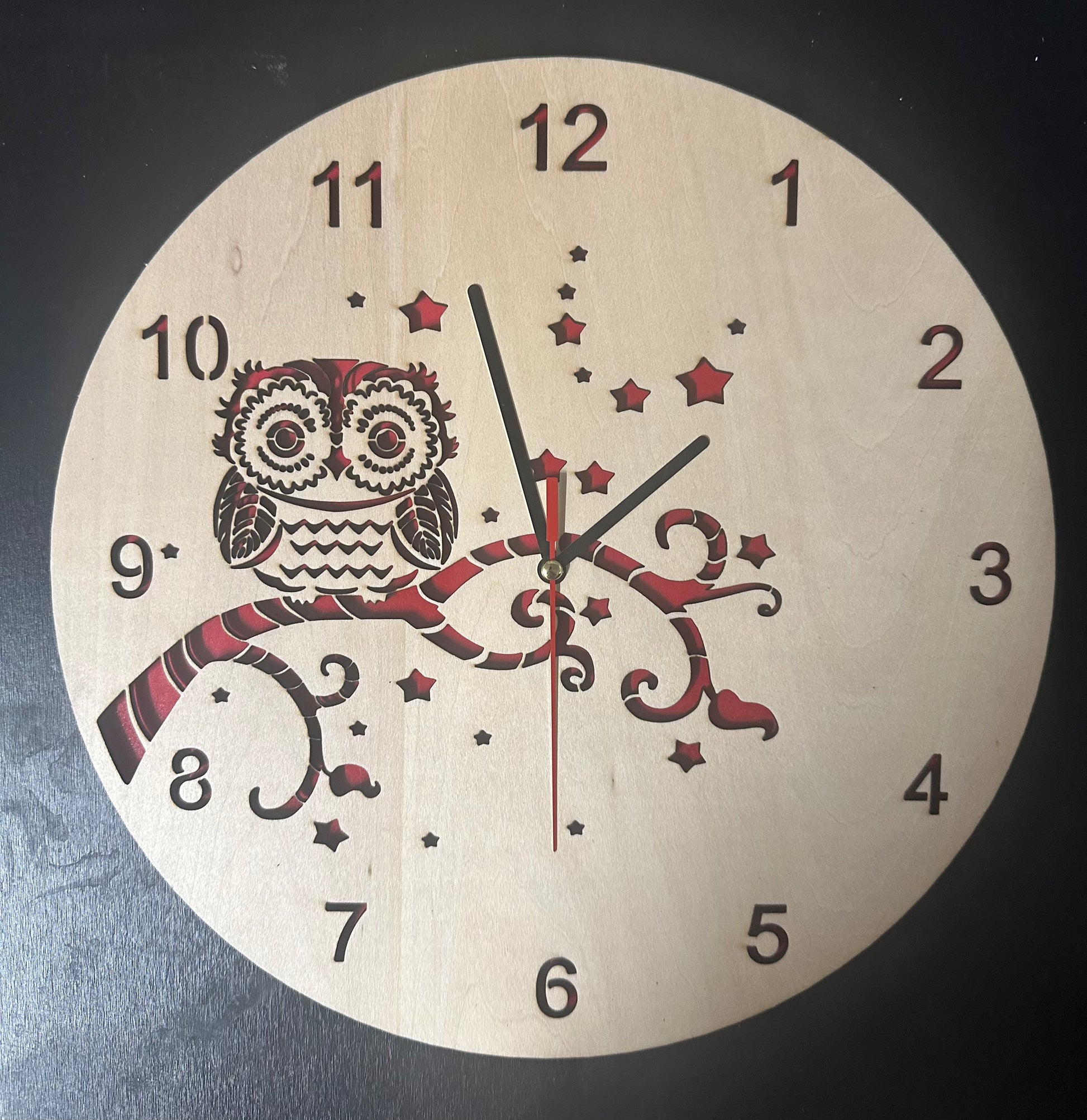 Stellen Sie sich vor, wie diese weise Eule täglich über Ihr Zuhause wacht und dabei zuverlässig die Zeit im Blick behält. Der warme rote Hintergrund bringt Lebendigkeit in Ihre Räume, während das liebevolle Eulen-Motiv für Gemütlichkeit und einen Hauch von Waldmagie sorgt.